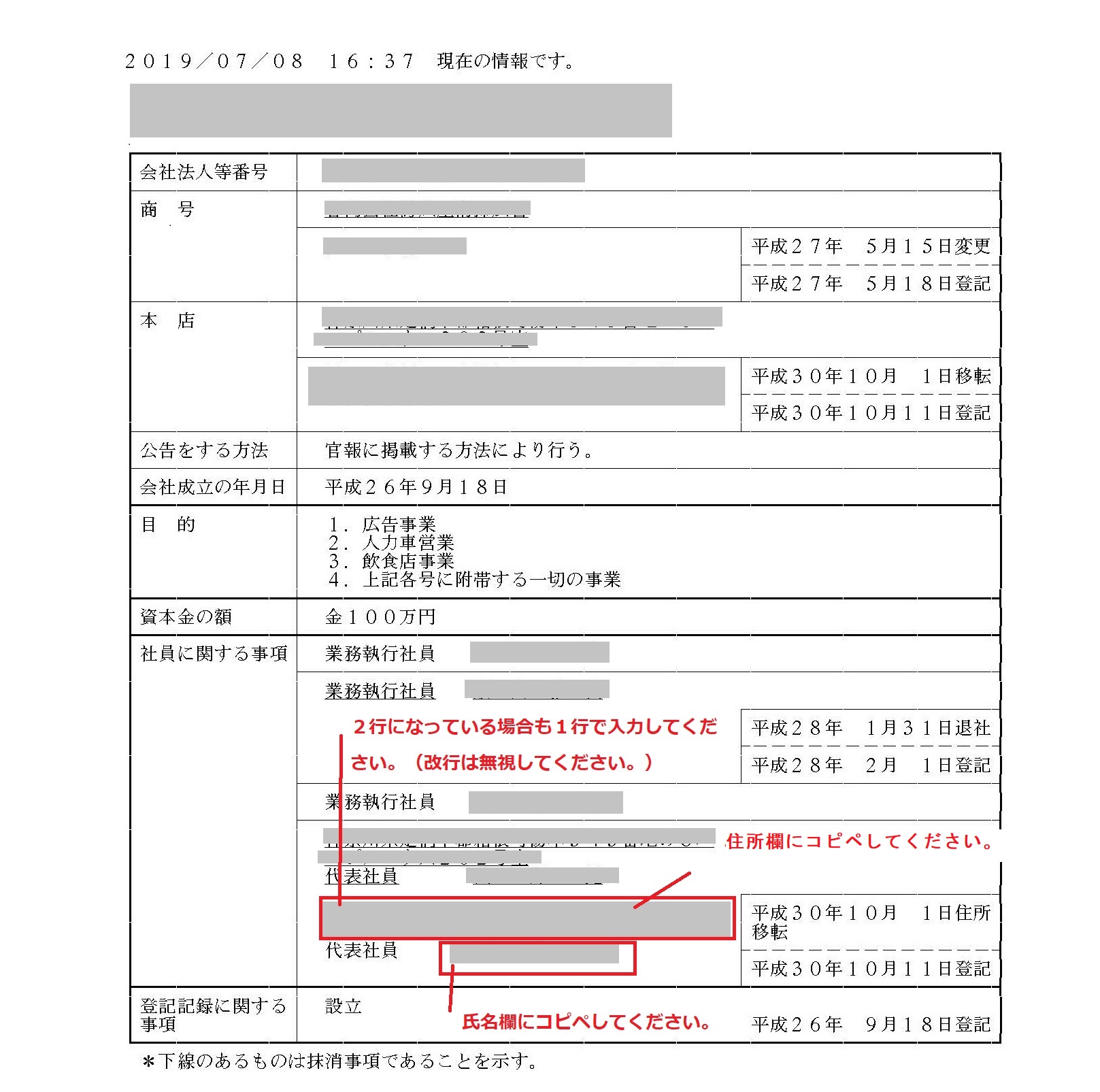 代表社員の氏名・住所は登記簿を参照して入力してください。