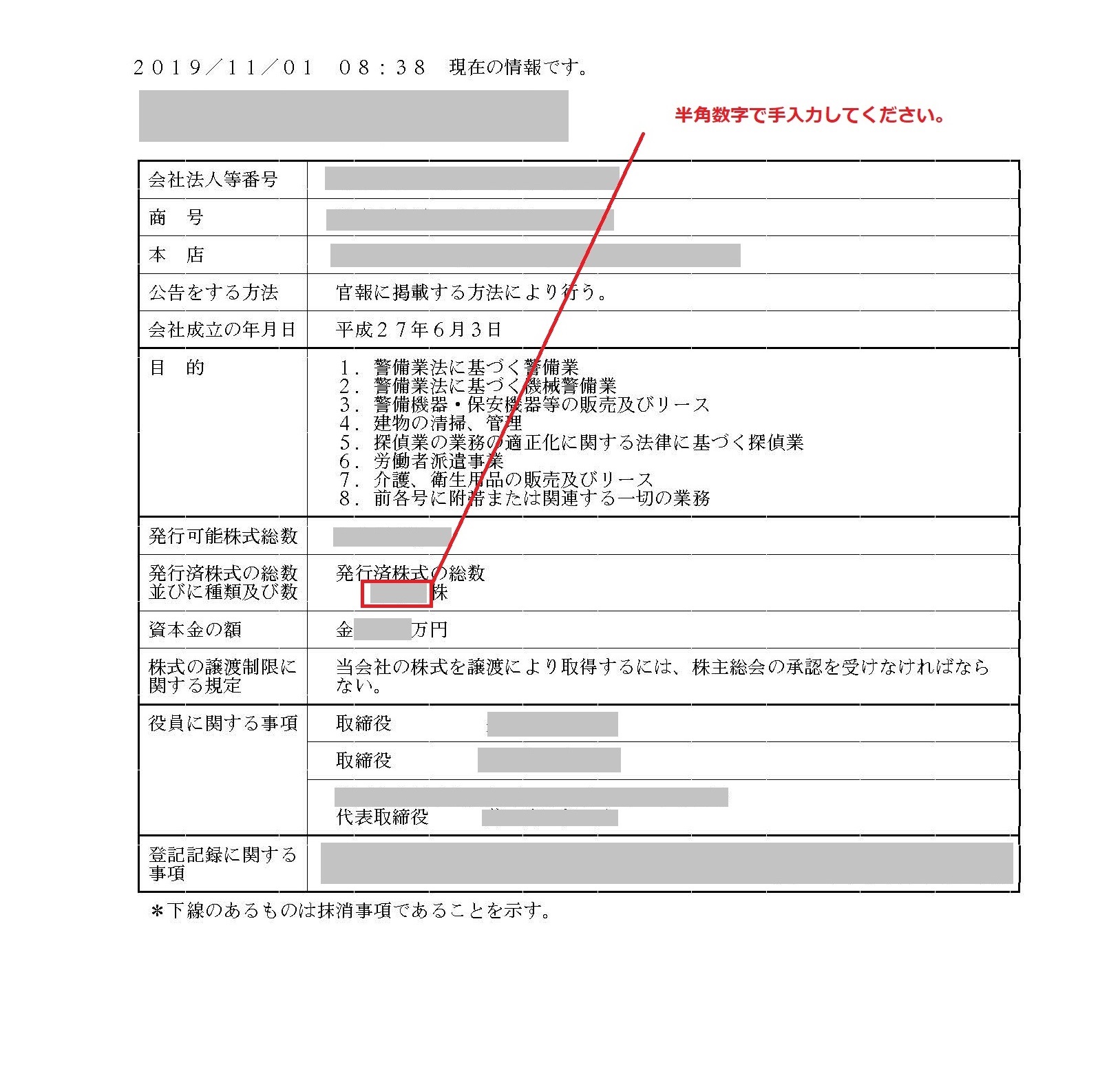 メールの件名を「株式会社・発行済株数の総数の入力」よくある質問追加希望(お客様のログインID)として送ってください。