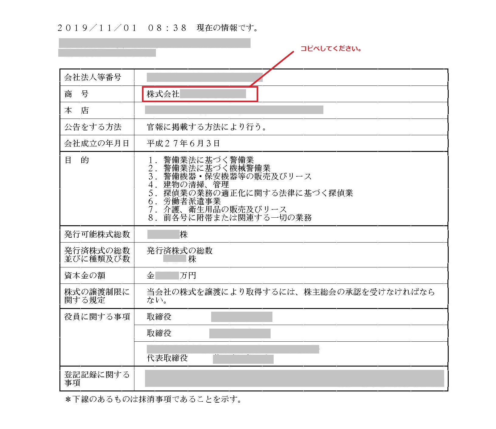 商号の入力 01入力項目 2019.11.042026.01.19 代表 商号は登記簿を参照してください。登記簿が手元にない場合は商号の検索をご覧ください。 目次 登記簿がある場合登記簿がない場合1 商号を検索する2 商号をコピペして入力してください。 登記簿がある場合 お客様 商号は登記簿をコピーしてください。 登記簿がない場合 1 商号を検索する 国税庁の法人番号検索サイトで商号を検索してください。 2 商号をコピペして入力してください。 。