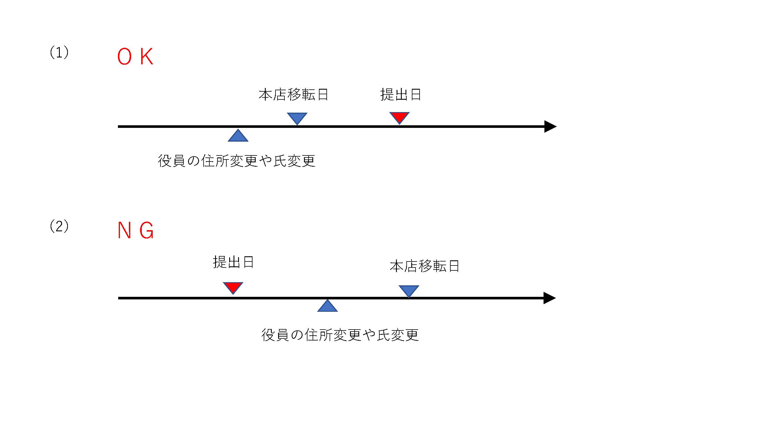 登記申請書提出日の入力(本店移転) 01入力項目 2020.01.132026.01.15 目次 解説よくある質問登記申請書が受理された日が本店移転日でしょうか? 解説 代表 実際に登記申請書を提出する日を入力してください。郵送する場合は投函日を入力してください。登記簿に反映される日ではありません。提出日は本店移転日や役員の住所変更日より後にしてください。下図参照 よくある質問 登記申請書が受理された日が本店移転日でしょうか? Q登記申請書が受理された日が本店移転日でしょうか?A いいえ。本店移転日は登記申請書の別紙に記載した移転日です。受理された日は登記日として記録に残ります。